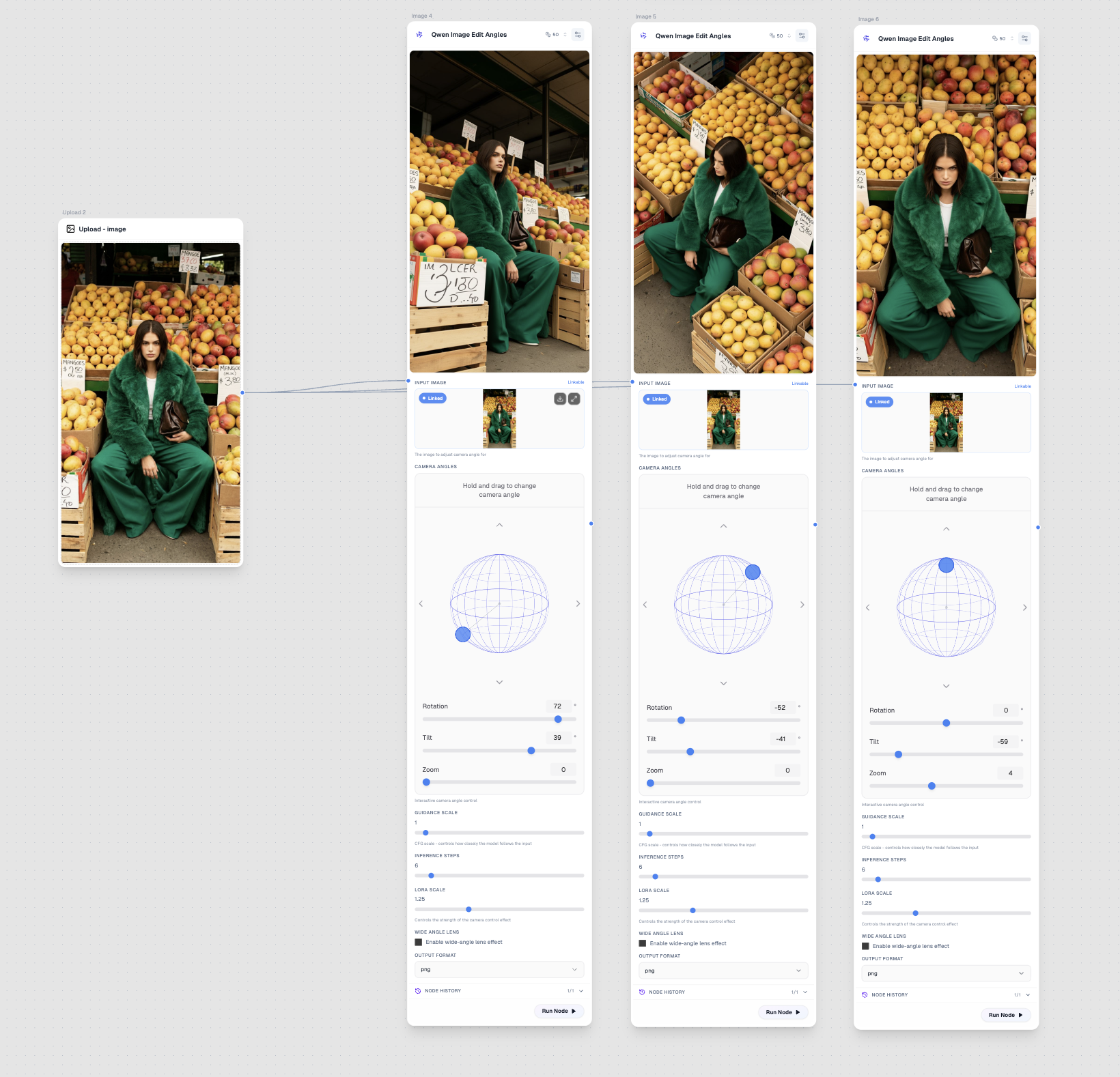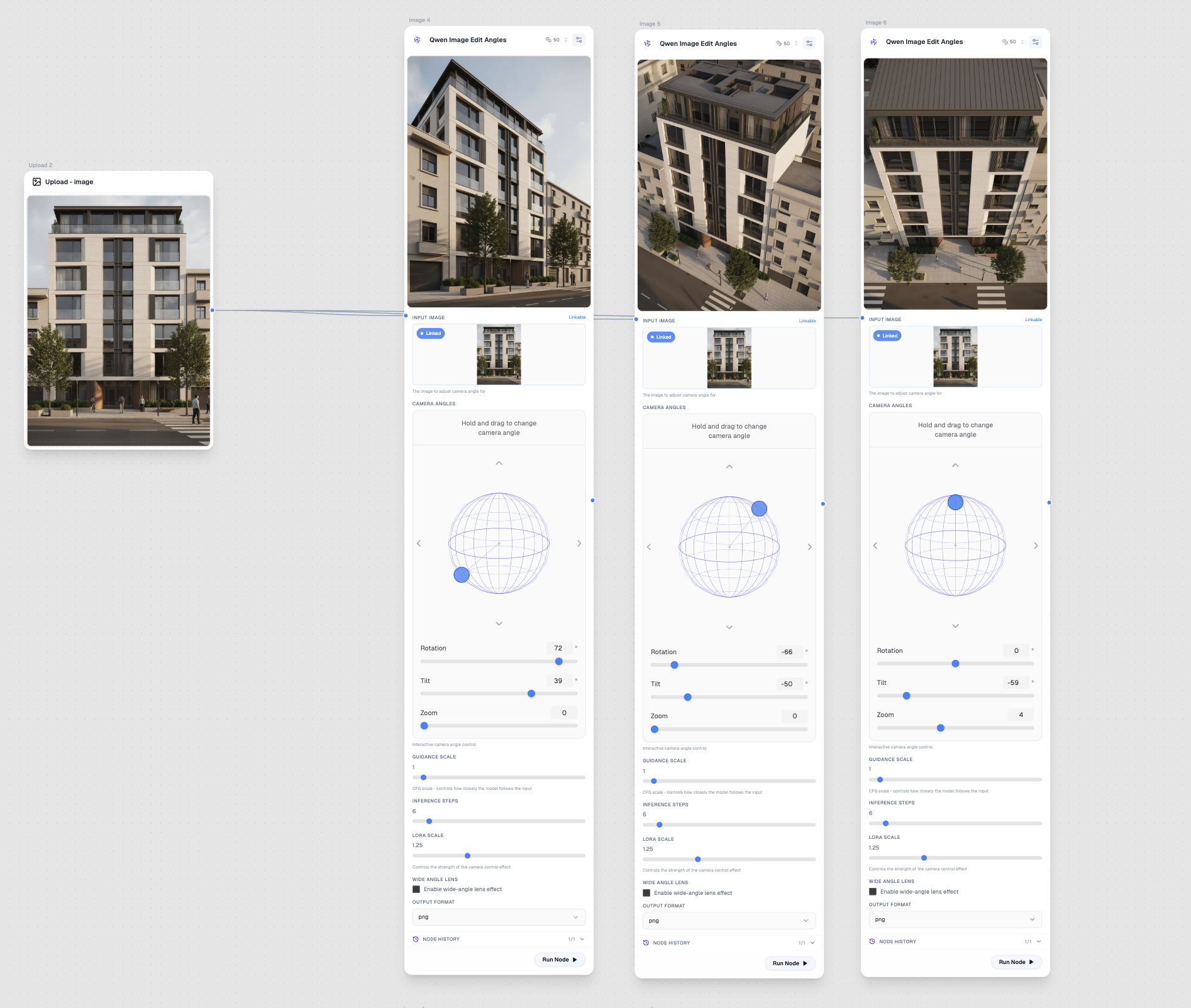 Transform any photo by generating new camera angles with precise control over rotation, tilt, and zoom. Perfect for creating product shots from different perspectives or exploring architectural views from a single reference image.
